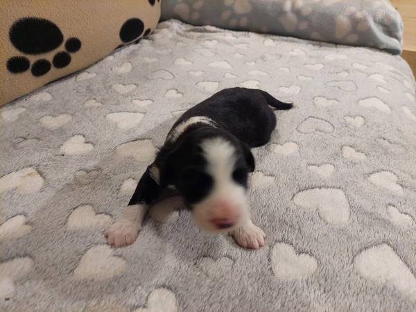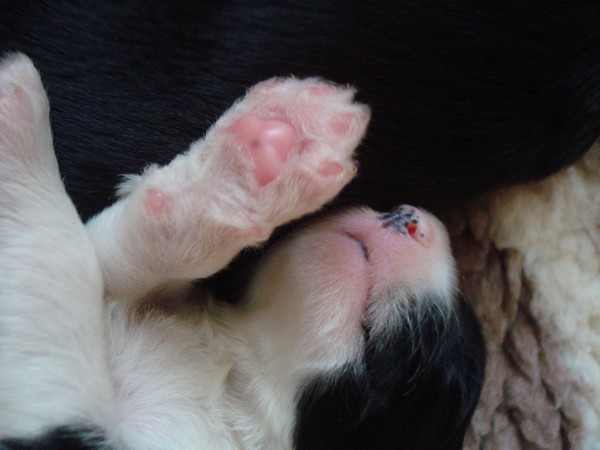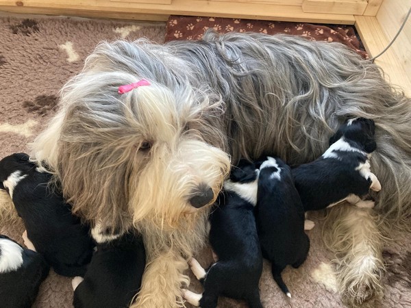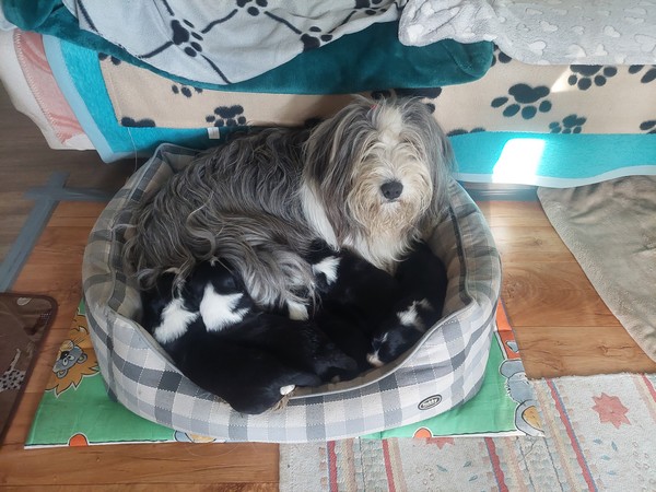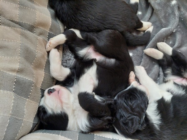 Štěňátka se narodila 30. 09. 2025. 3 pejsci, 3 fenky. Teď i s maminkou spokojeně odpočívají